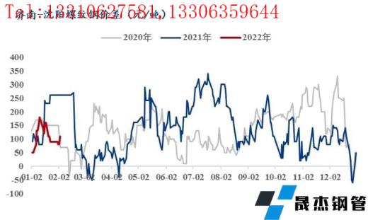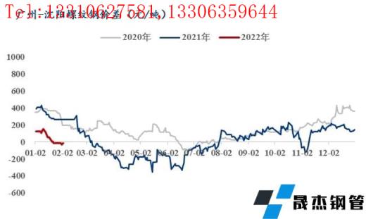 2、節(jié)后開市東北地區(qū)螺紋價格在京津大幅上漲以及無縫厚壁鋼管廠家的集體上調(diào)下累計上漲140-160元/噸,漲后價格已經(jīng)明顯高于華東華南地區(qū),從利潤角度出發(fā)無縫厚壁鋼管廠家更傾向于本地化銷售;截至2月6日東北螺紋鋼庫存約70.3萬噸較節(jié)前增加19.3萬噸同比增加3.9萬噸,盤線庫存約20.8萬噸較節(jié)前增加6.4萬噸同比增加13.7萬噸,從省份來看遼寧地區(qū)的庫存壓力整體較大,黑吉尚可。同時今年春節(jié)時間較早,離需求啟動還有近一個月的時間,因此即使在南方價格不具優(yōu)勢的情況下,本地?zé)o縫厚壁鋼管廠家或繼續(xù)保持較高南下比例,2月份的實發(fā)量或高于計劃水平。
