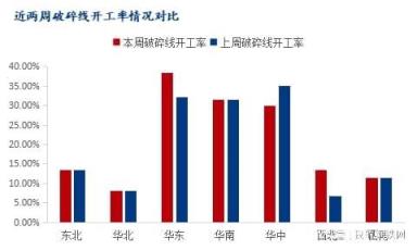 截止2月09日,統(tǒng)計全國242條廢鋼破碎線開工情況,廢鋼破碎線開工率為26.64%,較上周增2.87%,本周全國廢鋼破碎線開工率小增。全國區(qū)域?qū)Ρ瓤?,東北、華北、華南、西南地區(qū)破碎線開工率較上周持平,華東地區(qū)破碎線開工率較上周增6.25%,華中地區(qū)破碎線開工率較上周降5%,西北地區(qū)破碎線開工率較上周增6.67%。
