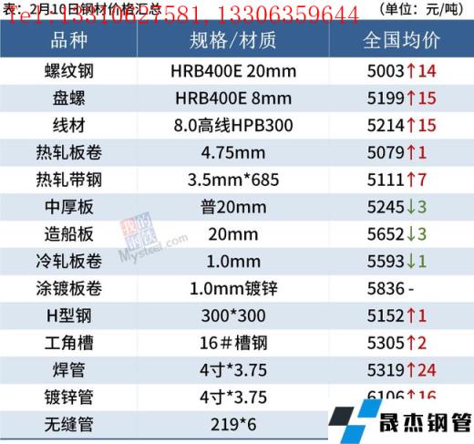 建筑厚壁無縫鋼管:2月10日,全國31個主要城市20mm三級抗震螺紋鋼均價5003元/噸,較上個交易日上漲14元/噸。本周建材產(chǎn)量受春節(jié)影響小幅回落;廠庫、社庫大幅增加,表觀消費小幅上升。短期來看,目前市場實際需求并未啟動,現(xiàn)貨價格多受情緒面驅(qū)動上漲,支撐力有限。因此預計短期現(xiàn)貨市場在情緒面驅(qū)動下價格仍有拉高的可能。