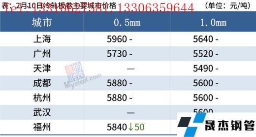 冷軋板卷:2月10日,全國24個主要城市1.0mm冷卷均價5593元/噸,較上個交易日下跌1元/噸。今日黑色系期貨盤面整體呈低開高走的態(tài)勢,在期貨盤面的影響下,午后市場詢單人數(shù)明顯增加,但由于下游客戶觀望情緒較為濃厚,今日整體成交一般。庫存方面,據(jù)不完全統(tǒng)計,現(xiàn)冷軋無縫厚壁鋼管廠家?guī)齑?3.71萬噸,周環(huán)比增加0.5萬噸,社會庫存139.17萬噸,周環(huán)比增加5.47萬噸,周消費量67.89萬噸,環(huán)比減少1.26萬噸。綜合來看,故預計11日國內(nèi)冷軋板卷價格或?qū)⒄鹗庍\行。