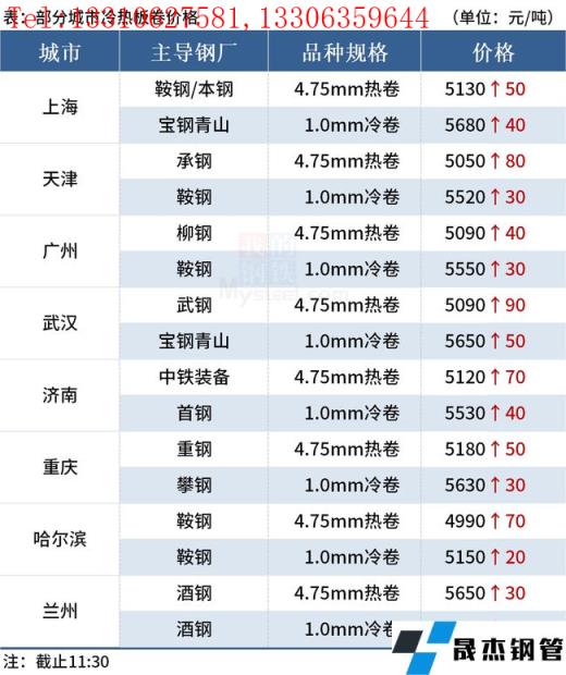 ◎天津:11日早盤(pán)冷軋市場(chǎng)價(jià)格漲30,1.0天鐵5530(st12)首鋼5540唐鋼5510包鋼5510,成交清淡。(單位:元/噸)