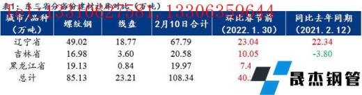 本周為春節(jié)后第二周,東三省建筑厚壁無縫鋼管現(xiàn)貨庫存整體較春節(jié)前最后一周增加40.52萬噸,其中螺紋鋼現(xiàn)貨庫存85.13萬噸,線盤23.21萬噸,建材社會庫存總量為108.34萬噸,較上周增40.52萬噸,增幅高達(dá)37.40%。據(jù)悉春節(jié)期間各市場到貨較多,尤其以沈陽和長春市場累庫最為明顯,主要是西鋼、新?lián)徜?、新鵬輝和四平等廠庫陸續(xù)前移至市場。