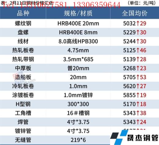建筑厚壁無縫鋼管:2月11日,全國31個主要城市20mm三級抗震螺紋鋼均價5032元/噸,較上個交易日上漲29元/噸。短期來看,目前現(xiàn)貨市場仍然處于供需雙弱的格局,情緒面驅(qū)動價格上漲,同時當(dāng)前現(xiàn)貨市場庫存總量遠低于去年同期。因此預(yù)計下周國內(nèi)建筑厚壁無縫鋼管價格或?qū)⒗^續(xù)趨強為主。