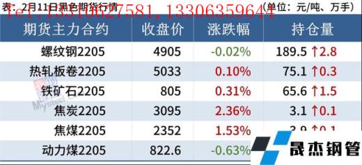 焦炭:2月11日,焦炭市場穩(wěn)中偏弱運行,噸焦盈利出現(xiàn)虧損狀態(tài)。受冬奧會限產(chǎn)政策影響,疊加環(huán)保檢查頻繁,焦企開工率下滑,庫存處于低位甚至零庫存,山東限產(chǎn)幅度在50%左右,噸焦盈利出現(xiàn)虧損狀態(tài),焦炭處于下行市場,市場現(xiàn)在普遍看跌心態(tài)。無縫厚壁鋼管廠家冬奧會期間限產(chǎn)力度進一步趨嚴(yán),采購意愿一般,需求偏弱,目前多以消耗庫存為主,預(yù)計短期內(nèi)焦炭市場偏弱運行。
