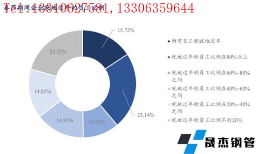 今年所有員工都就地過(guò)年的比例為15.72%,就地過(guò)年的員工比例在60%以上的企業(yè)占樣本49.78%,還有20.52%的企業(yè)就地過(guò)年員工比例不到20%。