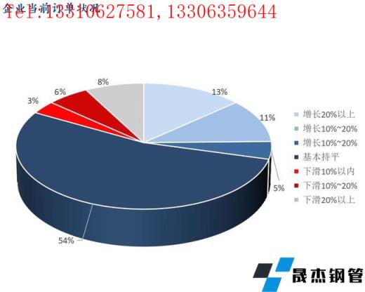 3、樣本企業(yè)當(dāng)前訂單增速小幅下降。增長(zhǎng)20%以上的企業(yè)占比13.48%,增長(zhǎng)10-20%的企業(yè)占比11.24%;增長(zhǎng)10%以內(nèi)的企業(yè)占比4.49%;基本持平的企業(yè)占比53.93%;下滑10%以內(nèi)的企業(yè)占比3.37%;下滑10-20%的企業(yè)占比5.62%;下滑20%以上的企業(yè)占比7.87%。