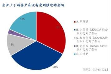 關(guān)于企業(yè)的上下游客戶有沒(méi)有受到限電的影響,參與調(diào)研企業(yè)中表示不存在占比32.37%,小范圍(20%以內(nèi)的企業(yè))受到了影響占比34.15%,相當(dāng)范圍(20%-50%的企業(yè))受到了影響占比12.42%,大范圍(50%以上的企業(yè))受到了影響占比2.66%,不清楚占比18.40%??梢?jiàn)還是有相當(dāng)一部分企業(yè)受到了限電影響。