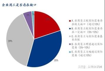 3、對(duì)比實(shí)際經(jīng)營(yíng)需要,54.32%企業(yè)表示在崗員工比實(shí)際需要存在缺口,39.02%企業(yè)表示在崗員工與實(shí)際需要基本匹配,僅有6.65%在崗員工超過(guò)實(shí)際需要。