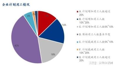 4、對(duì)于企業(yè)計(jì)劃用工情況,參與調(diào)研企業(yè)中47.45%企業(yè)計(jì)劃增加用工人數(shù),43.46%企業(yè)保持基本不變,9.09%的企業(yè)計(jì)劃裁減用工人數(shù)。