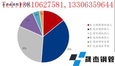 對(duì)于企業(yè)未來(lái)投資計(jì)劃,參與調(diào)研企業(yè)中表示大規(guī)模增加投入占比14.19%,適當(dāng)增加投入占比37.03%,暫不增加投入占比30.38%,適當(dāng)縮減投入占比11.75%,退出部分業(yè)務(wù)占比4.21%,完全退出市場(chǎng)占比2.44%。