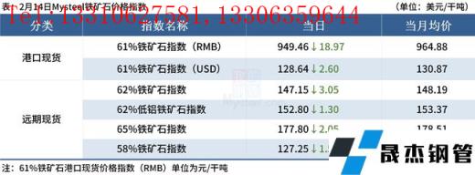 ◎ 2月14日,全國主港鐵礦石成交90.30萬噸,環(huán)比增7.9%;237家主流貿易商建材成交5.61萬噸。