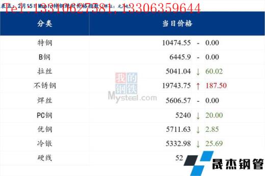 2月15日普鋼絕對價格指數(shù)變化:綜合指數(shù)5160.57,下跌45.19;螺紋鋼指數(shù)4967.73,下跌41.5;線材指數(shù)5294.66,下跌44.61;熱軋板卷指數(shù)4965.96,下跌71.43;冷軋板卷指數(shù)5519.44,下跌28.28;中厚板指數(shù)5173.77,下跌28.4。