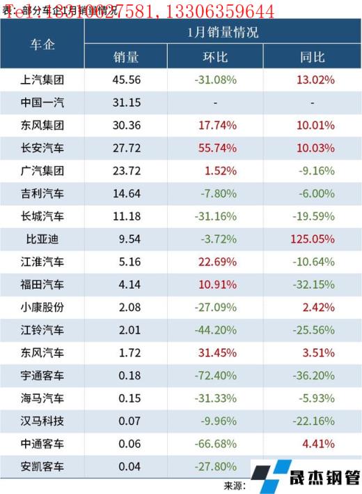 免責聲明:本網(wǎng)站(山東聊城晟杰無縫鋼管廠m.aremjf.cn)刊載的“1月我國汽車產(chǎn)銷降幅明顯,多數(shù)車企呈現(xiàn)雙位數(shù)下跌”等均源于網(wǎng)絡,版權歸原作者所有,且僅代表原作者觀點,本文所載信息僅供參考。轉載僅為學習與交流之目的,如無意中侵犯您的合法權益,請及時聯(lián)系刪除。本網(wǎng)站刊登此篇文章并不意味著本站贊同其觀點或證實其內(nèi)容的真實性,我們不對其科學性、嚴肅性等作任何形式的保證。如果侵犯了您的版權,請盡快聯(lián)系我們予以撤銷,謝謝合作!