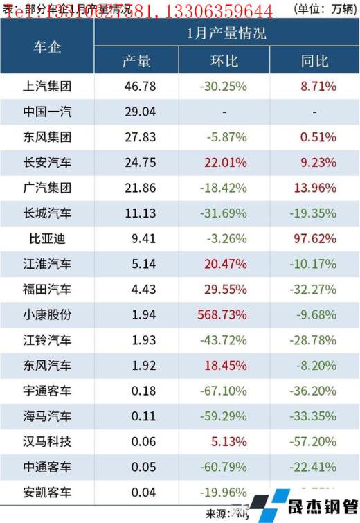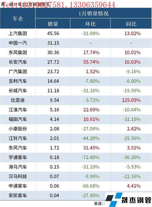 免責(zé)聲明:本網(wǎng)站(山東聊城晟杰無縫鋼管廠m.aremjf.cn)刊載的“1月我國汽車產(chǎn)銷降幅明顯,多數(shù)車企呈現(xiàn)雙位數(shù)下跌”等均源于網(wǎng)絡(luò),版權(quán)歸原作者所有,且僅代表原作者觀點,本文所載信息僅供參考。轉(zhuǎn)載僅為學(xué)習(xí)與交流之目的,如無意中侵犯您的合法權(quán)益,請及時聯(lián)系刪除。本網(wǎng)站刊登此篇文章并不意味著本站贊同其觀點或證實其內(nèi)容的真實性,我們不對其科學(xué)性、嚴(yán)肅性等作任何形式的保證。如果侵犯了您的版權(quán),請盡快聯(lián)系我們予以撤銷,謝謝合作!