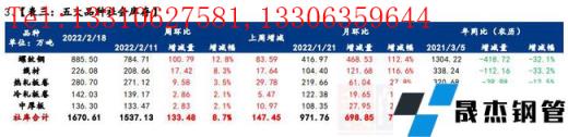 庫存方面,五大品種厚壁無縫鋼管總庫存春節(jié)后連續(xù)累增三周,環(huán)比上周增加110.41萬噸,增幅5.0%。分品種看,建材庫存增加100.78萬噸,增幅為7.0%;板材庫存增加9.63萬噸,增幅1.3%。;分指標(biāo)看,無縫厚壁鋼管廠家?guī)齑姝h(huán)比減少23.07萬噸,降幅3.5%;社會庫存環(huán)比增加133.48萬噸,增幅8.7%。