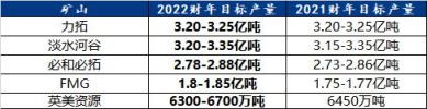 ◎ 澳洲巴西19港發(fā)運量顯示,2021年澳巴鐵礦發(fā)運總量12.77億噸,環(huán)比增加1701萬噸,增量主要來自于巴西。根據(jù)各大礦山2022財年生產(chǎn)計劃情況來看,力拓和淡水河谷目標產(chǎn)量與去年基本持平,必和必拓和FMG均存在一定增量,并且高礦價下,其它礦山例如英美等也將有一定增產(chǎn)的潛力,預計2022年全球鐵礦石產(chǎn)量同比將小幅增加。
