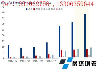 從本周各主流市場(chǎng)庫存走勢(shì)來看,各主流市場(chǎng)庫存均繼續(xù)累積。其中南昌市場(chǎng)庫存增幅最大,增幅達(dá)到23.20%;九江和新余市場(chǎng)庫存增幅在15%-17%之間;贛州和鷹潭市場(chǎng)庫存增幅在10%以下。目前來看,無縫厚壁鋼管廠家正常發(fā)貨,雖然省內(nèi)多數(shù)商家已經(jīng)開市,但只有少數(shù)工地零星啟動(dòng),市場(chǎng)終端需求整體偏弱,成交清淡,以投機(jī)鎖貨為主,市場(chǎng)庫存持續(xù)累積。