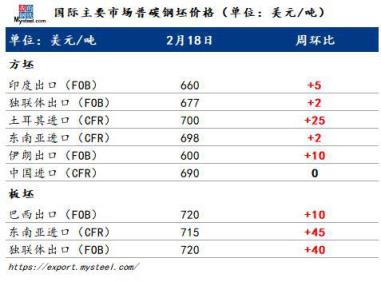 本周中東資源報價有所上漲,據(jù)了解目前伊朗方坯價格約為60-610美元/噸FOB,較上周上漲10美元/噸。