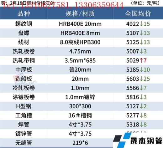 建筑厚壁無縫鋼管:2月18日,全國31個主要城市20mm三級抗震螺紋鋼均價4922元/噸,較上個交易日跌15元/噸。短期來看,目前市場基本面仍然不穩(wěn),情緒驅(qū)動價格波動較大。短期還需要關注需求復蘇及累庫速度。預計下周國內(nèi)建筑厚壁無縫鋼管價格或?qū)⒗^續(xù)窄幅調(diào)整。