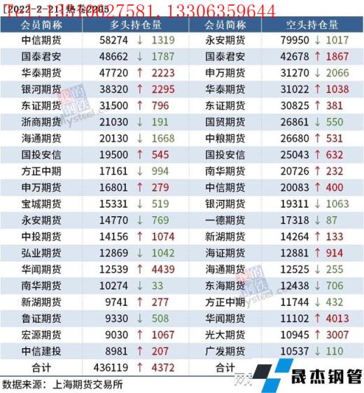 截至2月21日收盤,螺紋鋼2205收4845元/噸,漲2.43%;熱卷2205收4959元/噸,漲2.04%;鐵礦石2205收707元/噸,漲4.74%。