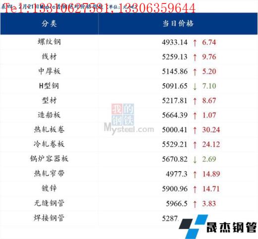 2月21日普鋼絕對價(jià)格指數(shù)變化:綜合指數(shù)5153.74,上漲14.05;螺紋鋼指數(shù)4933.14,上漲6.74;線材指數(shù)5259.13,上漲9.76;熱軋板卷指數(shù)5000.41,上漲30.24;冷軋板卷指數(shù)5529.21,上漲24.12;中厚板指數(shù)5145.86,上漲5.2。