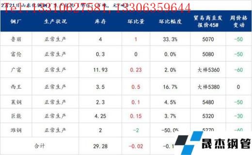 數(shù)據(jù):山東優(yōu)特?zé)o縫厚壁鋼管廠家?guī)齑?9.28萬(wàn)噸,環(huán)比增下降0.02萬(wàn)噸,減少0.07%,同比減少1.29萬(wàn)噸,減少4.22%。