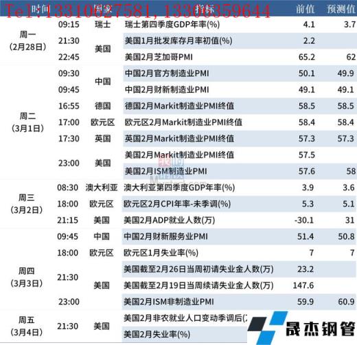 點評:2月是制造業(yè)生產(chǎn)淡季,季節(jié)性因素導(dǎo)致PMI可能下降,預(yù)計制造業(yè)PMI可能在49.8%左右,穩(wěn)增長力度加大有望推動未來PMI指數(shù)上升。主要無縫厚壁鋼管廠家建筑厚壁無縫鋼管庫存上升,可能是基建投資預(yù)期改善帶來庫存需求。主要受疫情散發(fā)的影響,預(yù)計2月非制造業(yè)PMI下降到50.6%左右。