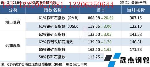 ◎ 2月25日,全國主港鐵礦石成交83.00萬噸,環(huán)比增32.2%;237家主流貿(mào)易商建材成交9.95萬噸,環(huán)比增10.3%。