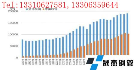 1990年-2021年全球和中國粗鋼產(chǎn)量走勢圖