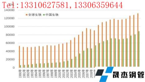 1990年-2020年全球和中國煉鋼生鐵產(chǎn)量走勢圖