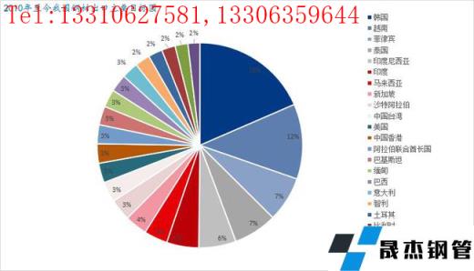 從我國出口目標(biāo)國構(gòu)成情況來看,我國厚壁無縫鋼管主要輸出地位韓國、越南、菲律賓、泰國等地,其中韓國及越南由于當(dāng)?shù)丶庸S較多,除當(dāng)?shù)匦〔糠窒耐猓D(zhuǎn)口貿(mào)易占大部分進(jìn)口量。因此韓國、越南、菲律賓等地進(jìn)口品種基本以板材為主。雖然近幾年進(jìn)口量稍許有所減少,但從量級(jí)上來看仍為中國最大買家。