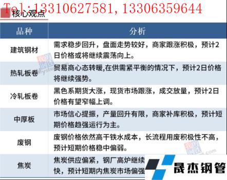 3月1日,國內(nèi)厚壁無縫鋼管市場漲幅擴(kuò)大,唐山普方坯出廠價(jià)漲50報(bào)4600元/噸。今日黑色系期市大幅上漲,現(xiàn)貨市場跟漲,市場情緒積極,成交放量。