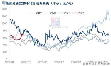 去年同期(2021年2月),由于汽車以及直接出口需求旺盛,冷軋強(qiáng)熱軋弱的局面明顯,冷軋總庫存累庫高度同比降幅達(dá)20%,冷熱價差也拉到新高,月均值達(dá)800元/噸以上。在去年同期冷軋“如火如荼”的行情襯托下,顯得今年的冷軋春天愈發(fā)“寒冷”。