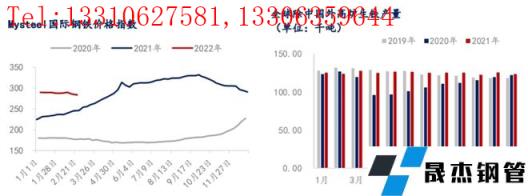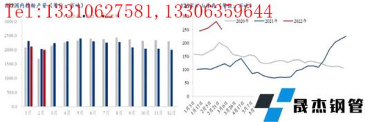 海外需求:國際鋼價震蕩下行,1月各國高爐生產運行穩(wěn)定。截至2月25日,國際鋼鐵價格指數較上月底下降3.9個點,降幅1.4%。世鋼協最新數據顯示,1月除中國外生鐵產量3841.1萬噸,日均123.9萬噸/天,環(huán)比上月增加0.1萬噸/天,增幅0.1%。1月各國高爐生產運行穩(wěn)定,目前的鋼價對無縫厚壁鋼管廠家生產積極性仍支撐,但是2月和3月,俄烏軍事行動讓其涉及的高爐生產充滿不確定性,兩國1月生鐵產量占全球除中國外生鐵產量的17%。