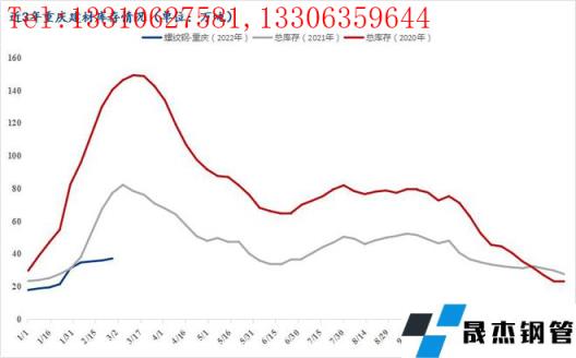 截至2月28日,重慶建材庫存總計63.5萬噸,較節(jié)前增加12.6萬噸,增幅24.75%。節(jié)后冬儲資源逐漸到達市場,貿(mào)易商兌現(xiàn)利潤意愿強,2月下旬累庫速度逐漸放緩,當前庫存環(huán)比同期處于近3年來最低水平。另外,3月份是傳統(tǒng)旺季,下游需求釋放必然會明顯增加,重慶庫存或很快出現(xiàn)下降,整體庫存壓力不大。