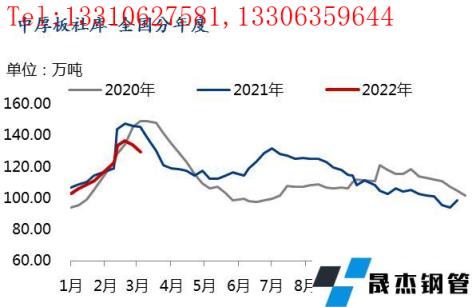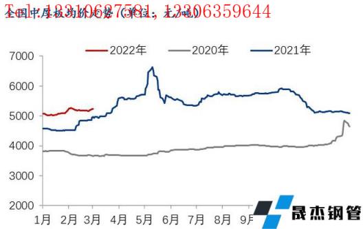 概述:2月份,國內(nèi)中厚板品種價格呈現(xiàn)沖高后小幅回落的走勢。供應(yīng)方面,在冬奧會、春節(jié)、采暖季限產(chǎn)影響下,2月上中旬無縫厚壁鋼管廠家產(chǎn)量持續(xù)偏低,不過,由于無縫厚壁鋼管廠家盈利情況明顯好轉(zhuǎn),因此,冬奧會過后,無縫厚壁鋼管廠家產(chǎn)量迅速增加。需求方面,由于今年春節(jié)返鄉(xiāng)比例同比去年大幅增加,所以今年春節(jié)后的需求啟動速度是緩慢的,不過由于無縫厚壁鋼管廠家接單較好,導致市場流通板資源在減少,這從今年節(jié)后社庫也能側(cè)面驗證。3月份,中板基本面從供需雙弱逐漸轉(zhuǎn)變?yōu)楣┬桦p強,那么價格走勢又如何呢?接下來,我們先看一下基本面情況。