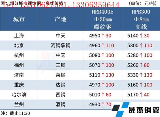 ◎生鐵:7日全國煉鋼生鐵價格部分上調(diào)。臨汾4180武安4250唐山4200萊蕪4180臨沂4150淄博4150福建4250內(nèi)蒙4200昆明3850新疆3800遼陽4000湖北4050。(單位:元/噸)