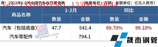 免責(zé)聲明:本網(wǎng)站(山東聊城晟杰無縫鋼管廠m.aremjf.cn)刊載的“海關(guān)總署:1-2月中國出口汽車47.7萬輛,同比增69.70%”等均源于網(wǎng)絡(luò),版權(quán)歸原作者所有,且僅代表原作者觀點,本文所載信息僅供參考。轉(zhuǎn)載僅為學(xué)習(xí)與交流之目的,如無意中侵犯您的合法權(quán)益,請及時聯(lián)系刪除。本網(wǎng)站刊登此篇文章并不意味著本站贊同其觀點或證實其內(nèi)容的真實性,我們不對其科學(xué)性、嚴(yán)肅性等作任何形式的保證。如果侵犯了您的版權(quán),請盡快聯(lián)系我們予以撤銷,謝謝合作!