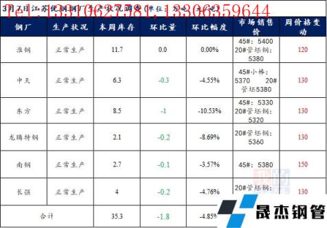 江蘇優(yōu)特?zé)o縫厚壁鋼管廠家棒材總庫存35.3萬噸,較上周下降1.8萬噸,環(huán)比降4.85%,較去年同期下降4.68萬噸,同比降11.71%,目前江蘇優(yōu)特?zé)o縫厚壁鋼管廠家均正常生產(chǎn)。