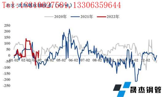 三、南北區(qū)域螺紋鋼價(jià)差情況: