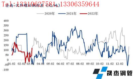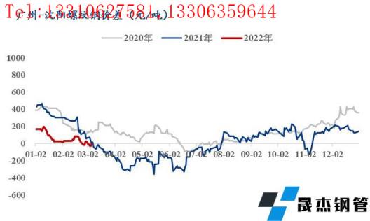 2月螺紋北京-沈陽月均價(jià)差+42元/噸,廣州-沈陽月均價(jià)差+33元/噸,上海-沈陽月均價(jià)差-89元/噸,濟(jì)南-沈陽月均價(jià)差+40元/噸。雖然本地尚未全面啟動,但本地?zé)o縫厚壁鋼管廠家跟漲節(jié)奏較快,帶動市場報(bào)價(jià)整體上漲,即東北價(jià)格繼續(xù)處在較高水平,南北無合適的價(jià)差已經(jīng)成為常態(tài)。