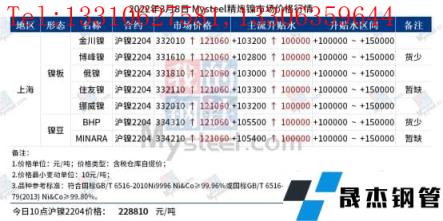 免責(zé)聲明:本網(wǎng)站(山東聊城晟杰無縫鋼管廠m.aremjf.cn)刊載的“鎳價極端行情之下 下游壓力凸顯”等均源于網(wǎng)絡(luò),版權(quán)歸原作者所有,且僅代表原作者觀點,本文所載信息僅供參考。轉(zhuǎn)載僅為學(xué)習(xí)與交流之目的,如無意中侵犯您的合法權(quán)益,請及時聯(lián)系刪除。本網(wǎng)站刊登此篇文章并不意味著本站贊同其觀點或證實其內(nèi)容的真實性,我們不對其科學(xué)性、嚴(yán)肅性等作任何形式的保證。如果侵犯了您的版權(quán),請盡快聯(lián)系我們予以撤銷,謝謝合作!