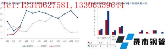 盤(pán)線方面,據(jù)我網(wǎng)對(duì)京津冀區(qū)域盤(pán)線無(wú)縫厚壁鋼管廠家投放量調(diào)研,2月份盤(pán)線實(shí)際投放量19.6萬(wàn)噸,環(huán)比增加2萬(wàn)噸,3月投放量計(jì)劃20.4萬(wàn)噸。1、河鋼樂(lè)鋼盤(pán)螺產(chǎn)線不定期生產(chǎn),且以品種線為主,3月盤(pán)線計(jì)劃生產(chǎn)3萬(wàn)噸;2、九江無(wú)縫厚壁鋼管廠家品種線生產(chǎn)為主,暫不計(jì)劃盤(pán)線;3、東華無(wú)縫厚壁鋼管廠家兩條盤(pán)螺產(chǎn)線在產(chǎn),但以品種線生產(chǎn)為主,2月盤(pán)線計(jì)劃產(chǎn)量?jī)H3萬(wàn)噸。
