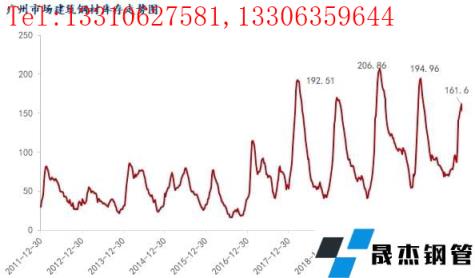 圖1:廣州市場建筑厚壁無縫鋼管庫存走勢圖 來源:鋼聯(lián)數(shù)據(jù)