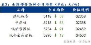 今日全國(guó)部分品種均價(jià)總體趨弱,整體漲幅為12~53元/噸。