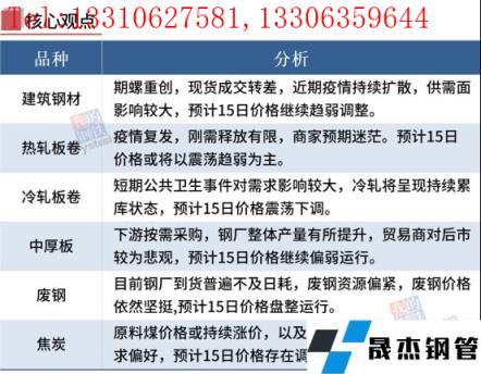 冷軋板卷:3月14日,全國(guó)24個(gè)主要城市1.0mm冷卷均價(jià)5653元/噸,較上個(gè)交易日下跌21元/噸。今日黑色期貨全線下跌,鋼價(jià)普遍走弱,局部市場(chǎng)冷軋現(xiàn)貨價(jià)格跟隨熱卷價(jià)格下跌。據(jù)市場(chǎng)反饋,近日多地公共衛(wèi)生事件頻發(fā),上海、廣東、江蘇、吉林地區(qū)因局部廠庫(kù)封鎖以及物流停運(yùn)等影響,市場(chǎng)交投情緒偏弱,日成交量下滑明顯。心態(tài)面看,目前貿(mào)易商心態(tài)多謹(jǐn)慎偏悲觀,短期公共衛(wèi)生事件對(duì)需求影響較大,冷軋將呈現(xiàn)持續(xù)累庫(kù)狀態(tài)。綜合來(lái)看,預(yù)計(jì)15日全國(guó)冷軋現(xiàn)貨價(jià)格震蕩下調(diào)。