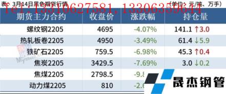 熱軋板卷:3月14日,全國(guó)24個(gè)主要城市4.75mm熱軋板卷均價(jià)5118元/噸,較上個(gè)交易日下跌53元/噸。黑色商品期貨市場(chǎng)大幅下挫,下游采購(gòu)量觀望,商家心態(tài)悲觀,全天成交清淡。綜合來(lái)看,當(dāng)前疫情呈現(xiàn)復(fù)發(fā),剛需釋放有限,商家預(yù)期迷茫。短期鋼價(jià)震蕩運(yùn)行,既因?yàn)榍榫w受到期貨市場(chǎng)的引導(dǎo),又因?yàn)樾枨鬀]有放量的跡象,而無(wú)縫厚壁鋼管廠家起到"托舉"的作用。綜合來(lái)看,預(yù)計(jì)15日熱軋板卷價(jià)格或震蕩下行為主。