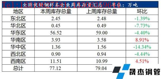 全國優(yōu)特鋼棒材樣本總庫存77.12萬噸,環(huán)比下降1.92萬噸,降幅2.43%。