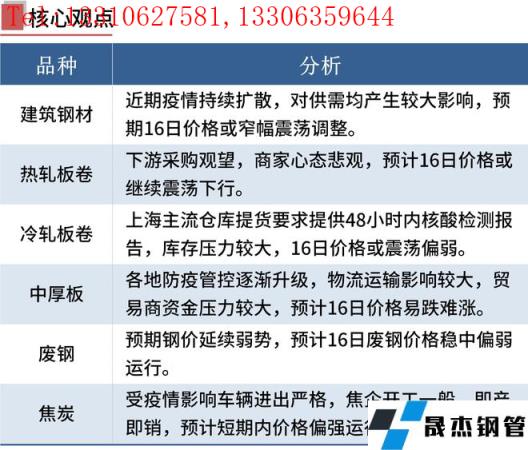 近期,全國(guó)疫情呈現(xiàn)局部高度聚集和多點(diǎn)散發(fā)態(tài)勢(shì),多個(gè)城市實(shí)現(xiàn)封閉管理,建設(shè)工地、物流運(yùn)輸受到影響,鋼市成交量明顯下降。雖然部分地區(qū)無(wú)縫厚壁鋼管廠家生產(chǎn)也受到影響,但建筑工地受到的沖擊更大,預(yù)期鋼市供需壓力加大,短期鋼價(jià)或震蕩偏弱。