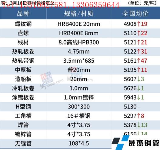 建筑厚壁無縫鋼管:3月16日,全國31個主要城市20mm三級抗震螺紋鋼均價4908元/噸,較上個交易日漲19元/噸。短期來看,在宏觀消息刺激下,市場悲觀情緒明顯修復(fù),或?qū)蝇F(xiàn)貨市場迎來反彈,至于反彈高度,仍需關(guān)注后期供需面變化,如北方地區(qū)近期高爐集中復(fù)產(chǎn)以及疫情對于需求端的影響。因此預(yù)期17日國內(nèi)建筑厚壁無縫鋼管價格或?qū)⒗^續(xù)趨強運行為主。